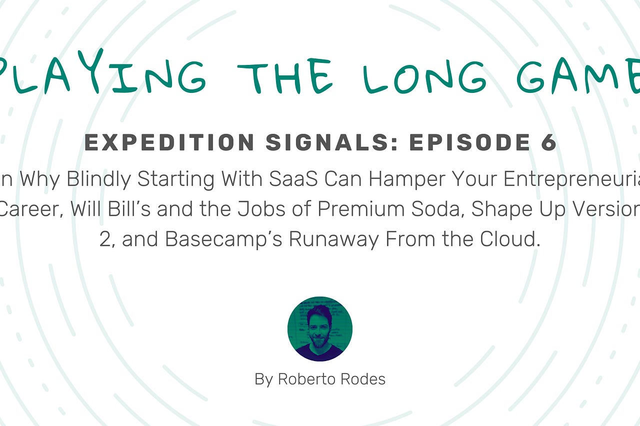 On Why Blindly Starting With SaaS Can Hamper Your Entrepreneurial Career, Will Bill’s and the Jobs of Premium Soda, Shape Up Version 2, and Basecamp’s…